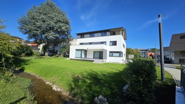 Ein weißes Haus mit der Nummer 3 an der Seite